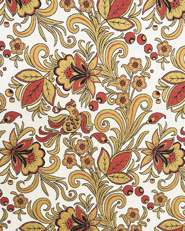 Гобелен в русском стиле Хохлома белая ширина 140 см