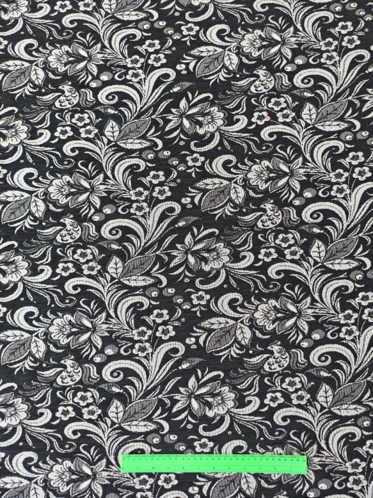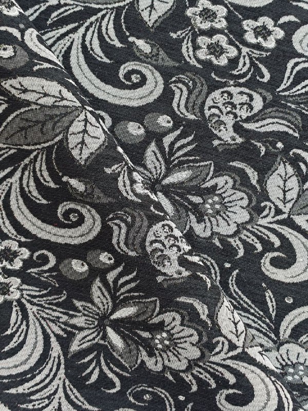 Гобелен в русском стиле Хохлома монохром ширина 140 см